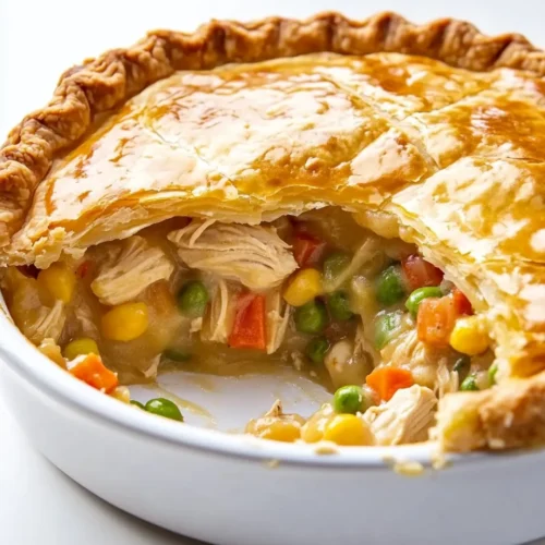 The Classic Homemade Chicken Pot Pie is a timeless dish that embodies warmth and comfort in every bite. This savory pie is filled with tender chunks of chicken, vibrant vegetables, and a creamy sauce, all enveloped in a flaky, golden crust. Perfect for weeknight meals or family gatherings, it appeals to both young and old, making it an ideal choice for any occasion. The rich flavors meld together beautifully, creating a satisfying experience that brings joy to the table. With its heartwarming qualities and versatile nature, Classic Homemade Chicken Pot Pie is destined to become a favorite in your household.