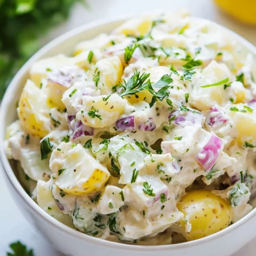 Classic Homemade Potato Salad is a timeless dish that brings comfort and nostalgia to the table. This recipe combines tender potatoes with a creamy dressing, creating a perfect harmony of flavors and textures. Ideal for picnics, barbecues, and family gatherings, this potato salad is loved by people of all ages. The subtle tang from the dressing enhances the natural earthy flavor of the potatoes, making it a standout side dish. Its creamy consistency and vibrant colors make it a visually appealing addition to any meal. Whether enjoyed on a warm summer day or as a comforting side during colder months, Classic Homemade Potato Salad is sure to satisfy and please everyone.