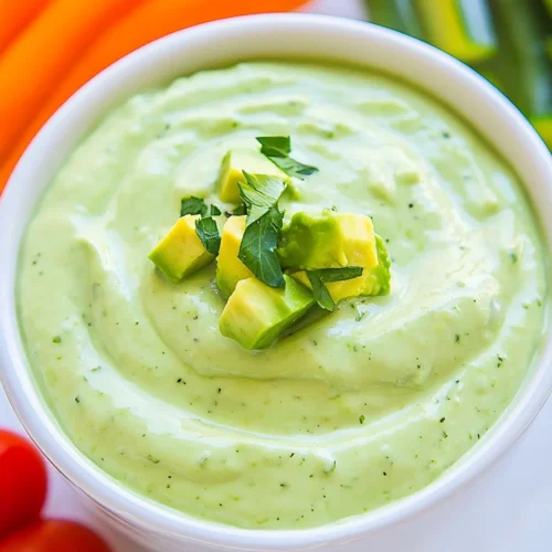 Creamy Avocado Ranch Dressing And Dip is the perfect blend of rich, velvety avocado and zesty ranch flavors that elevate any dish. This versatile dressing is not only a delightful addition to salads but also an excellent dip for fresh vegetables, chips, and more. With its creamy texture and vibrant green color, it appeals to both the health-conscious and those seeking a flavorful condiment. Ideal for weeknight meals, family gatherings, or casual get-togethers, Creamy Avocado Ranch Dressing And Dip is sure to impress guests and family alike. Its unique flavor profile makes it a standout choice, marrying the creamy goodness of avocado with the tangy notes of ranch, ensuring it will become a staple in your culinary repertoire.