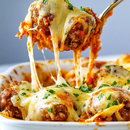 One of the main reasons you’ll adore this Delicious Cheesy Meatball Casserole For Comforting Nights is its exceptional flavor profile. The combination of savory meatballs, zesty tomato sauce, and creamy melted cheese creates a taste sensation that is both comforting and satisfying. Each bite is a delightful experience, as the flavors work together to create a balanced dish that never feels overwhelming. Another standout aspect is the ease of preparation. With minimal ingredients and straightforward steps, this recipe allows you to spend less time in the kitchen and more time enjoying the company of your family or guests. The cooking method, which involves baking, ensures that the meatballs remain juicy while the cheese gets perfectly bubbly and golden. Lastly, this casserole’s versatility makes it suitable for various occasions—from casual weeknight dinners to festive gatherings. You can easily adjust the recipe to suit your personal preferences, making it a go-to dish for any time of year.