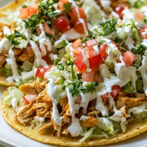 One of the primary reasons you’ll adore this recipe for Fresh and Flavorful Chicken Tostadas is its incredible taste. The blend of spices used to season the chicken not only enhances the natural flavors but also adds a delightful kick that elevates the dish to new heights. Each bite is a harmonious balance of savory, spicy, and fresh flavors that will leave you craving more. Another standout feature is the ease of preparation. With straightforward ingredients and simple cooking techniques, you can whip up these tostadas in under 30 minutes, making them an ideal choice for busy weeknights or last-minute gatherings. Moreover, the cooking method allows for a delightful crispiness that contrasts beautifully with the tender chicken and fresh toppings. Lastly, the versatility of Fresh and Flavorful Chicken Tostadas is a game-changer. You can customize them with your favorite toppings, from guacamole to salsa, ensuring that each serving is unique and tailored to personal preferences. This flexibility makes them a go-to recipe for everyone in the family.