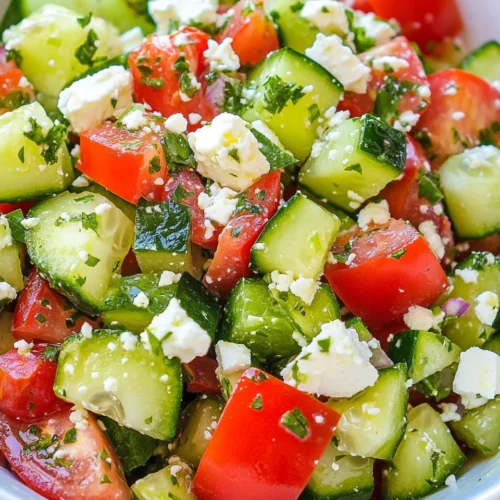 The Fresh Tomato Cucumber Feta Salad Recipe is a vibrant medley of flavors that captures the essence of summer in every bite. This delightful salad combines the crispness of cucumbers with the juiciness of ripe tomatoes and the tangy creaminess of feta cheese, making it an ideal side dish for warm evenings or a refreshing lunch option. Whether youβre hosting a family gathering, preparing a weeknight meal, or looking for a healthy addition to your lunchbox, this salad is an excellent choice. Its standout qualities lie in its simplicity and the way it showcases fresh ingredients, making it appealing to both seasoned chefs and novice cooks alike.