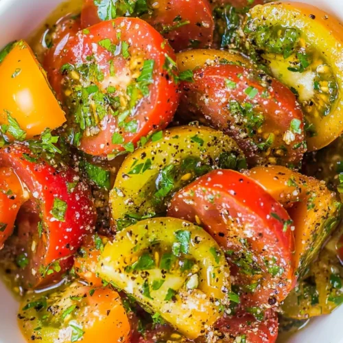 The Garlicky Fresh Tomato Salad Recipe is a vibrant and flavorful dish that celebrates the natural sweetness of ripe tomatoes, complemented by the robust taste of garlic. This salad is ideal for summer gatherings, picnics, or as a refreshing side dish for any weeknight meal. The combination of fresh ingredients creates a delightful explosion of flavors, making it a favorite among families and friends alike. Whether served alongside grilled meats or as a standalone dish, this salad showcases the beauty of seasonal produce. Its standout qualities include a simple preparation process and the ability to elevate any meal with its lively colors and enticing aroma.