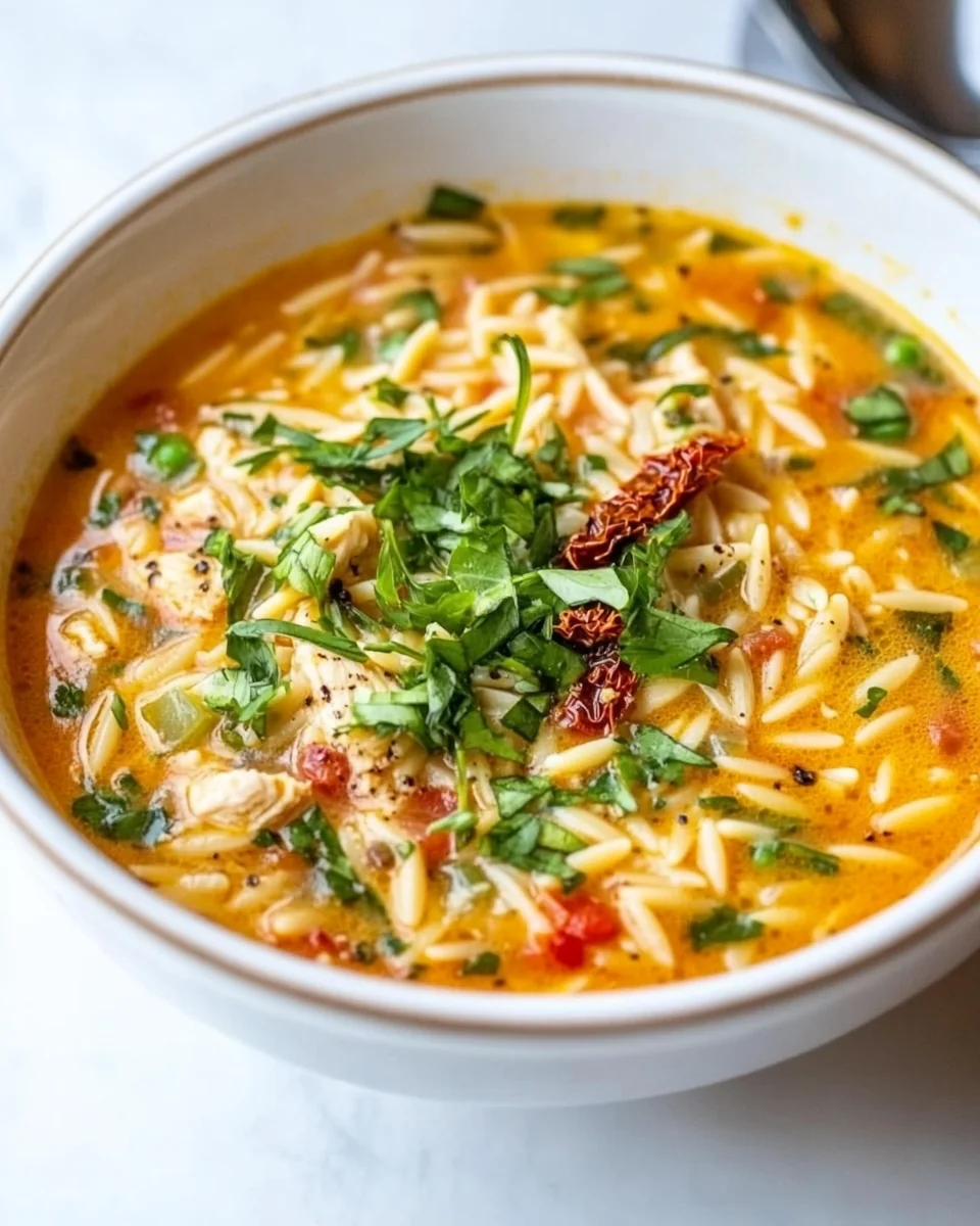 Hearty Chicken Orzo Soup With Sun-Dried Tomatoes is a comforting dish that brings warmth and flavor to your table. This delightful soup combines tender chicken, creamy orzo pasta, and the rich, tangy essence of sun-dried tomatoes, creating a bowl of goodness that is perfect for cozy evenings. Ideal for weeknight meals or family gatherings, this soup caters to all ages, making it a wonderful choice for everyone. The robust flavors meld beautifully, and the addition of vegetables enhances both the texture and nutritional profile. Whether it’s a chilly day or a quick dinner solution, Hearty Chicken Orzo Soup With Sun-Dried Tomatoes is sure to satisfy and impress.