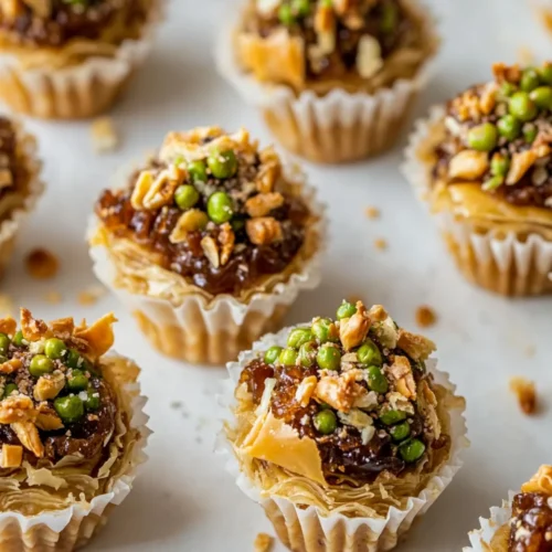 The Homemade Baklava Cups: A Sweet and Flavorful Treat is a delightful twist on the traditional baklava dessert, delivering all the rich flavors and textures in a convenient cup form. These delightful pastries are perfect for celebrations, family gatherings, or a cozy evening treat. With layers of flaky phyllo pastry, sweet honey, and a blend of nuts, the cups offer a balance of crispiness and chewiness with every bite. The sweet aroma of baked nuts and honey fills your kitchen, making it hard to resist sampling one right out of the oven. This recipe is ideal for home bakers looking for an impressive yet approachable dessert that appeals to both kids and adults alike. Whether served at a festive dinner or enjoyed as an everyday indulgence, Homemade Baklava Cups: A Sweet and Flavorful Treat are bound to impress.
