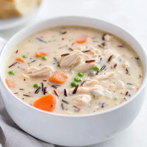 The Homemade Chicken And Wild Rice Soup For Cozy Nights is the perfect dish to warm your heart and soul during chilly evenings. This comforting soup combines tender chicken, hearty wild rice, and a medley of vegetables, creating a harmonious blend of flavors. The rich, creamy texture makes it an ideal choice for weeknight meals or family-friendly gatherings. Whether you’re seeking a cozy dish to enjoy after a long day or a nourishing option for a family gathering, this Homemade Chicken And Wild Rice Soup For Cozy Nights checks all the boxes. Its standout qualities lie not only in its delightful flavor but also in its ease of preparation and satisfying nature.