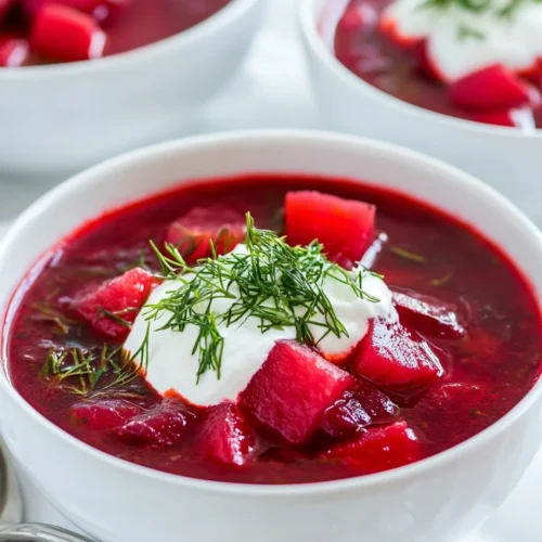The Homemade Classic Borscht Recipe is a vibrant and hearty soup that has its roots in Eastern European cuisine, particularly in Ukraine and Russia. This dish is known for its rich, earthy flavor profile, which comes from its primary ingredient, beets. The striking deep red color not only makes it visually appealing but also signifies its nutritious value. Often served hot, this soup is perfect for cozy weeknight dinners or special occasions with family and friends. Its balance of sweetness from the beets, acidity from the vinegar or lemon juice, and the savory notes from vegetables make it a unique culinary experience. Additionally, Homemade Classic Borscht Recipe can cater to a wide audience, from families looking for a comforting meal to those seeking vegetarian or vegan options, ensuring that everyone can enjoy this timeless dish.