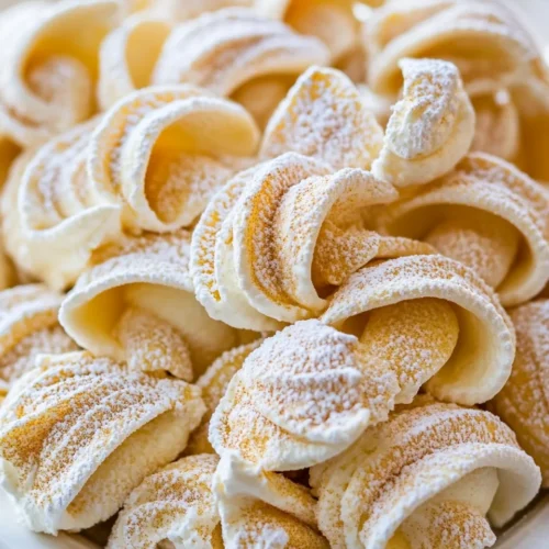 Meringue Shell Cookies are a delightful treat that brings a light and airy texture to your dessert table. These cookies are made primarily from egg whites and sugar, whipped to perfection to create a delicate shell that melts in your mouth. Their subtly sweet flavor, combined with an irresistible crunch, makes them a perfect addition to any occasion, whether it’s a festive gathering or an everyday snack. The beauty of Meringue Shell Cookies lies in their versatility; they can serve as a standalone dessert or as a base for other delicious creations such as pavlova or layered desserts. With their elegant appearance, they are sure to impress family and friends, making them a popular choice for those who appreciate refined flavors and textures.
