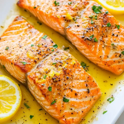 - Finish the dish by sprinkling freshly chopped parsley on top for a burst of color and flavor. Serve immediately while the salmon is hot, allowing the butter sauce to meld beautifully with the fish.