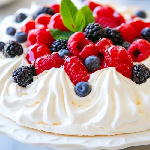 The Perfect Homemade Pavlova Recipe is a showcase of culinary elegance and simplicity, perfect for any occasion. Originating from New Zealand and Australia, this dessert features a crisp outer shell and a soft, marshmallow-like inside that melts in your mouth. The pavlova is typically topped with fresh fruits and whipped cream, making it a visually stunning centerpiece for gatherings. It is an ideal choice for festive celebrations, family dinners, or even a sweet treat after a weeknight meal. Its light and airy texture, combined with the sweetness of the toppings, creates a harmonious balance that appeals to all ages. Whether you are hosting a birthday party or simply indulging in a delightful dessert, the Perfect Homemade Pavlova Recipe will impress your guests and satisfy your cravings.