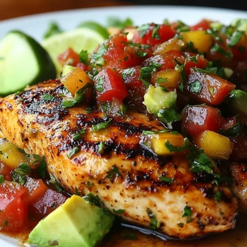 Quick Fiesta Lime Chicken with Avocado Salsa is a vibrant dish that combines juicy, marinated chicken with a refreshing avocado salsa, making it an ideal choice for weeknight dinners or family gatherings. The zesty lime flavor melds beautifully with the creamy avocado, offering a delightful contrast that excites the palate. This dish is not only quick to prepare but also packed with nutrients, making it perfect for health-conscious individuals. Whether you’re entertaining guests or simply seeking a satisfying meal after a long day, Quick Fiesta Lime Chicken with Avocado Salsa stands out with its vibrant colors and fresh ingredients, promising a fiesta of flavors in every bite.