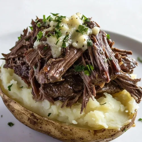 The Savory Pot Roast Twice Baked Potato Recipe is versatile and can be easily modified to suit different tastes and preferences. One creative variation is to introduce different cheeses. You can try using a blend of mozzarella and gouda for a unique flavor profile and stretchy texture. Another option is to add roasted vegetables like bell peppers or zucchini to the potato filling. This not only enhances nutrition but also adds a colorful twist to your dish. For those who enjoy a bit of heat, consider incorporating jalapeños or a dash of hot sauce into the potato mixture, providing a spicy kick that contrasts beautifully with the creamy filling. If you’re looking for a lighter alternative, opt for Greek yogurt instead of sour cream. This substitution maintains the creamy texture while adding a dose of protein. For a gourmet touch, consider topping the stuffed potatoes with crispy shallots or fried onions before serving. This adds crunch and elevates the dish to a restaurant-quality meal. Lastly, if you want to prepare the dish ahead of time, assemble the twice-baked potatoes and refrigerate them before the final baking step. This allows for easy meal prep and ensures you have a hearty dish ready to go when you need it.