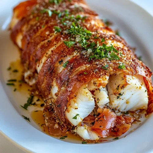 Simple Baked Cod Wrapped In Prosciutto is a culinary masterpiece that effortlessly combines the delicate flavors of cod with the savory richness of prosciutto. This dish is not only a feast for the eyes but also a delight for the palate, making it an ideal choice for weeknight meals, special family gatherings, or even an elegant dinner party. The tender, flaky texture of the cod complements the salty, crispy prosciutto, creating a harmonious balance that is sure to impress. With its vibrant presentation and mouthwatering taste, Simple Baked Cod Wrapped In Prosciutto stands out as a versatile dish that appeals to seafood lovers and those seeking a healthy yet indulgent meal.