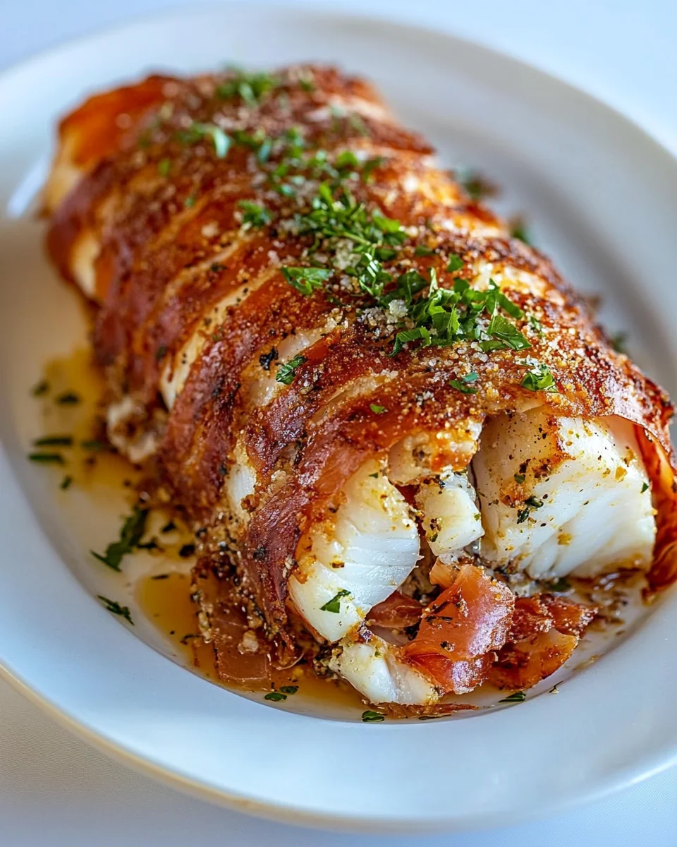 One reason you’ll adore Simple Baked Cod Wrapped In Prosciutto is its incredible flavor profile. The prosciutto adds a depth of savory goodness that enhances the mild taste of the cod, creating a dish that is both sophisticated and approachable. Additionally, this recipe is remarkably easy to prepare, making it perfect for busy weeknights or spontaneous dinner parties. The straightforward cooking method allows even novice cooks to impress their guests with minimal effort. Another standout quality of this recipe is its texture; the crispy exterior of the prosciutto contrasts beautifully with the flaky, tender cod, providing a satisfying bite. Lastly, the versatility of Simple Baked Cod Wrapped In Prosciutto means it can be paired with various sides, from fresh salads to hearty grains, making it a go-to option for any occasion.