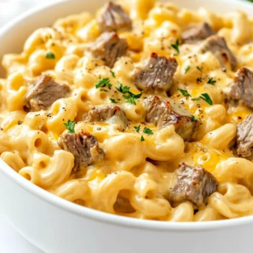 The Simple Beer Mac and Cheese with Savory Steak Bites is a comforting dish that perfectly marries creamy cheese and tender steak, creating a meal that is both satisfying and indulgent. This dish is ideal for weeknight dinners or family gatherings, delivering a flavor profile that appeals to both adults and children alike. The rich, cheesy sauce envelops the macaroni, while the savory steak bites provide a delightful contrast, making each bite a celebration of textures and tastes. This recipe stands out not just for its flavor but also for its ease of preparation, making it a go-to choice for busy nights when you crave something delicious yet uncomplicated.