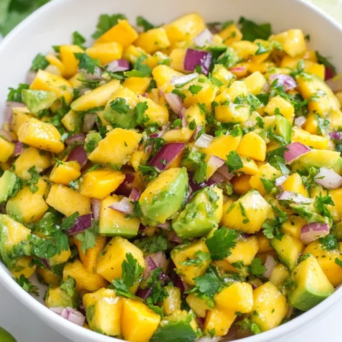 The Simple Fresh Mango Salsa Recipe is a vibrant and refreshing dish that brings a burst of tropical flavor to your table. Made with ripe mangoes, zesty lime juice, and fresh herbs, this salsa is not only delicious but also incredibly versatile. It serves as a perfect accompaniment to a variety of dishes, from grilled chicken to fish tacos, making it an ideal choice for weeknight meals or family gatherings. The sweetness of the mango balances beautifully with the tanginess of the lime and the heat from the jalapeño, creating a salsa that is both sweet and savory. With its bright colors and fresh ingredients, this salsa is sure to impress guests at summer barbecues or festive occasions.
