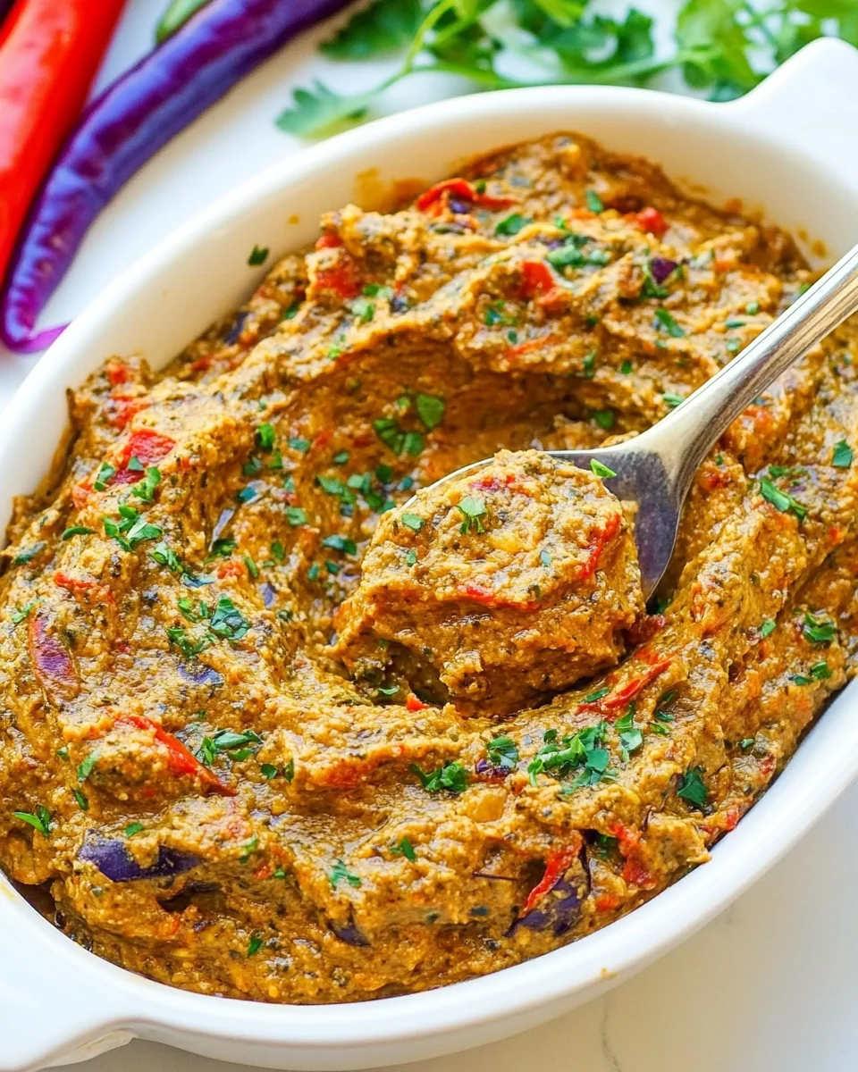 The Simple Homemade Eggplant Spread Recipe is versatile and can be served with pita bread, crackers, or fresh vegetables. It also makes a great addition to mezze platters, enhancing the variety of flavors.