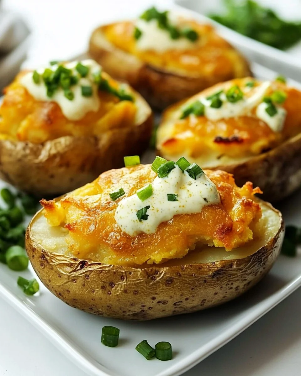 Twice Baked Potatoes: Classic Comfort Food Delight is the ultimate dish that brings warmth and satisfaction to any meal. This recipe features fluffy, buttery potatoes filled with a luscious mixture of cheese, sour cream, and seasonings, all baked to perfection. Whether you are preparing a cozy weeknight dinner or a festive family gathering, these twice-baked potatoes are a crowd-pleaser that can complement various main dishes or stand alone as a hearty meal. The creamy filling paired with the crispy potato skin creates a delightful contrast that appeals to kids and adults alike. With its rich flavor and comforting texture, this dish epitomizes the essence of comfort food.
